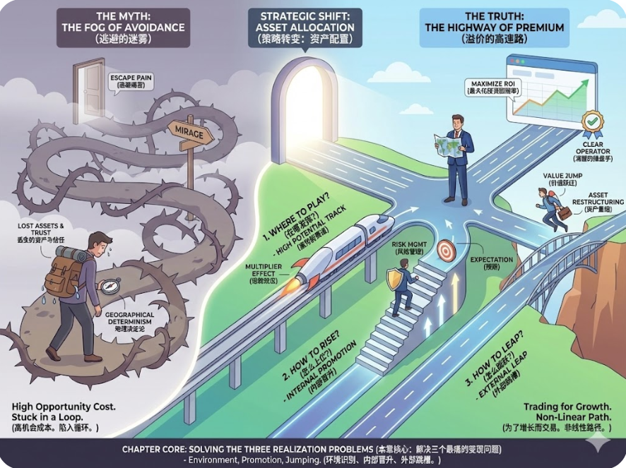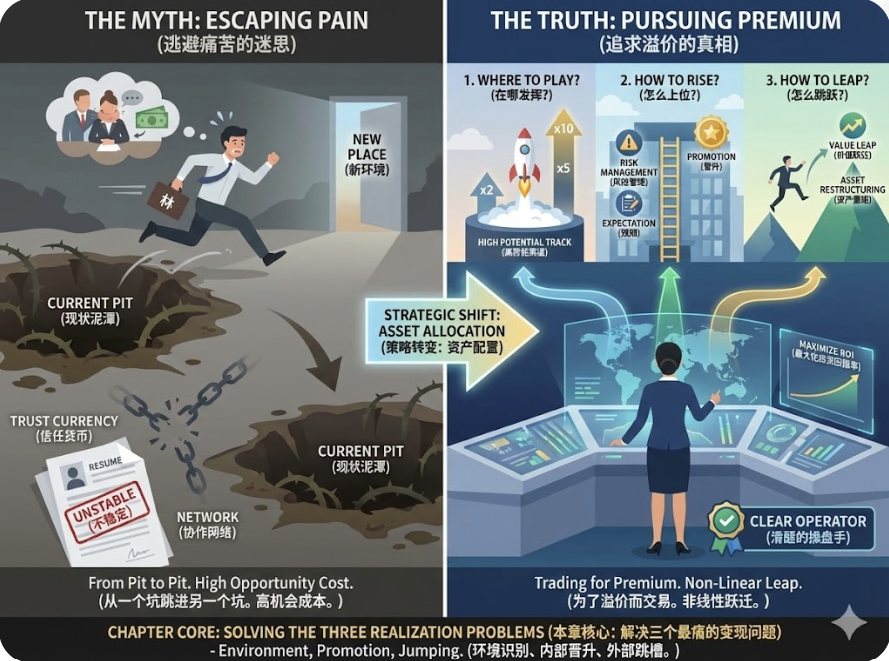 如果你把一辆法拉利开进了泥泞的沼泽地,或者在一个正在极速下坠的电梯里拼命做俯卧撑,你的努力不仅无效,甚至可能加速你的职业衰退。这就是“策略”的意义。所谓策略,不仅仅是勤奋的叠加,而是对“势能”的借用和对“交易”的把控。所以,在这一章,我们要解决的核心问题并不是“要不要走”,而是“如何最大化你的职业投资回报率(ROI)”。