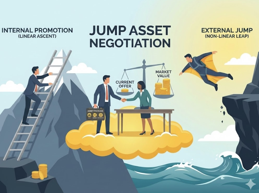 如果说内部晋升是职业生涯的线性增长,是一步一个台阶的攀登;那么外部跳槽往往意味着非线性的跃迁,是一次跨越山谷的飞行。但这也是风险最高的一步:你离开了熟悉的土壤,所有的信任货币归零,需要在一个全新的环境里重新证明自己。
